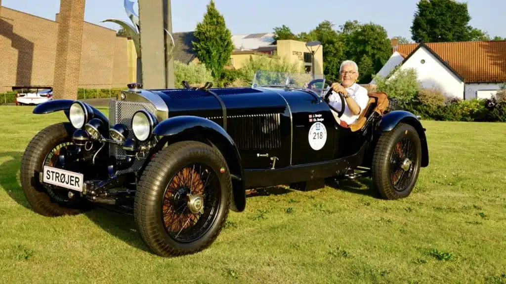 Jørgen Strøjer – ejer af Strøjer Samlingen ved Assens – stiller op uden for konkurrencen i sin sortlakerede Mercedes-Benz SSK; en bil der i årene omkring 1930 blev anset for at være det ultimative i bilteknologi.