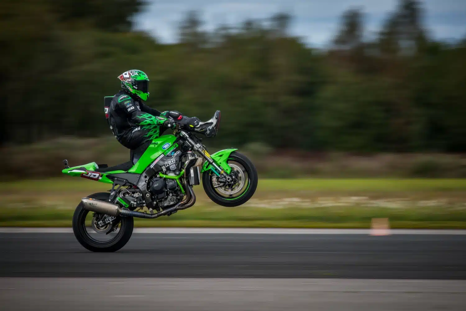 Når man sidder således, og samtidig vipper motorcyklen på baghjul, befinder man sig i en såkaldt highchair wheelie.