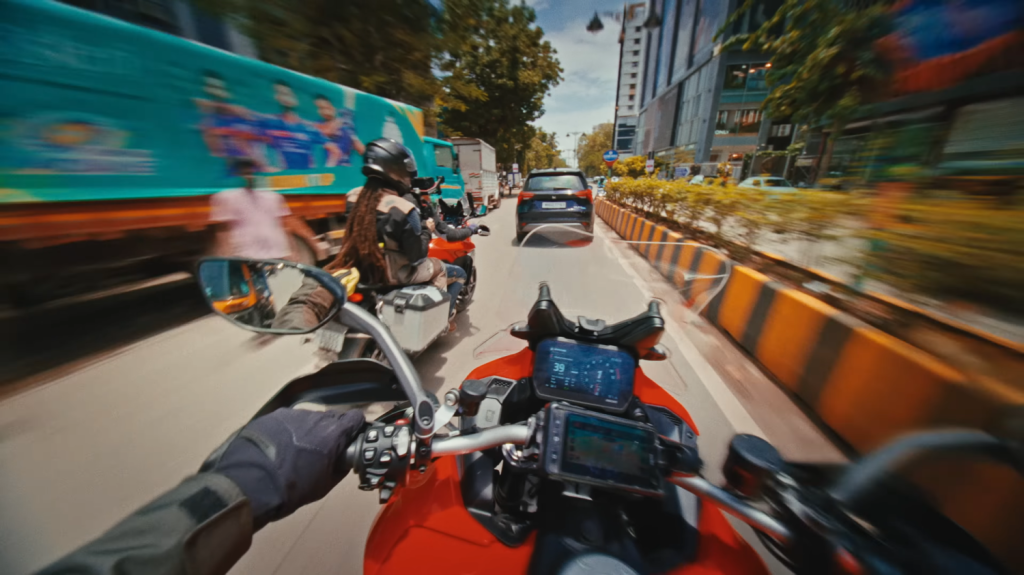 Til at filme hele miseren har holdet ikke ladet sig forlige med et Insta360 X4 eller andre modeller af de populære action kameraer, som benyttes for at optage indhold af motorcykelrelevant karakter. I stedet har de medbragt en fotograf, Edwin El Bainou, som fra bagsædet af den ene Ducati har filmet hele miseren med sit professionelle filmkamera.