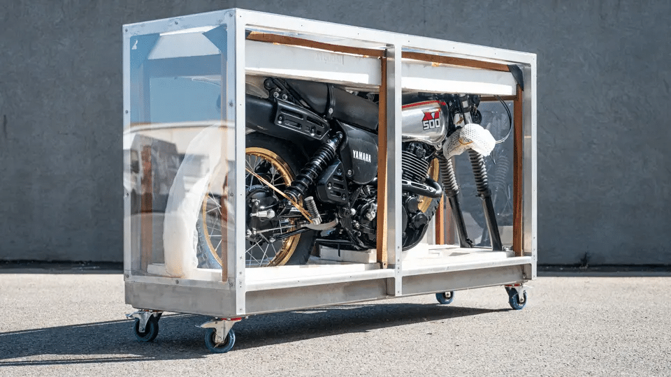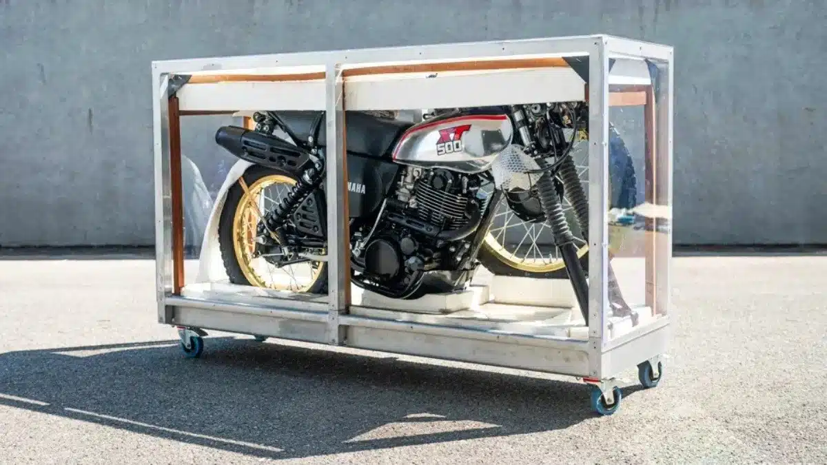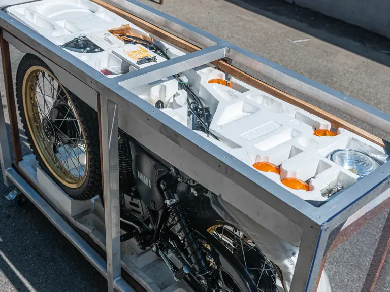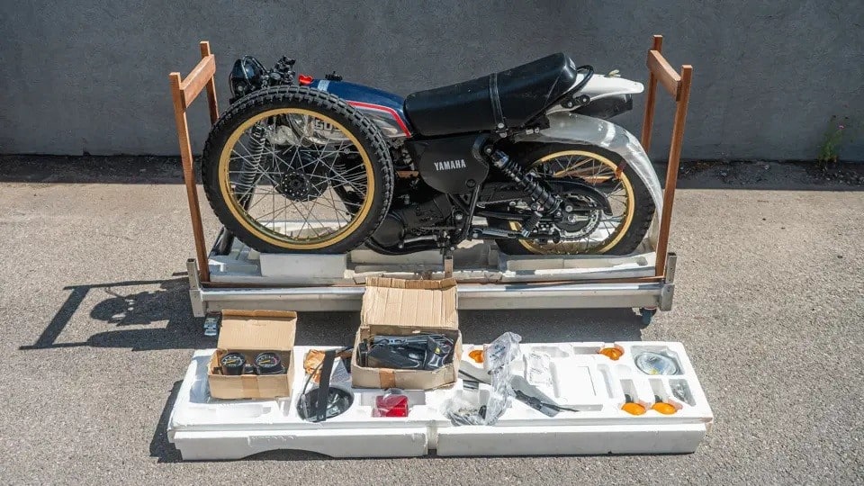 Direkte relateret til den Yamaha XT500 der bortauktioneres i den kommende måned, kunne du i 2023 se, hvordan det gik, da gutterne fra Bikes and Beards pakkede en 1982 Yamaha SR500 ud af den oprindelige transportkasse, og forsøgte at køre hjem på modellen.