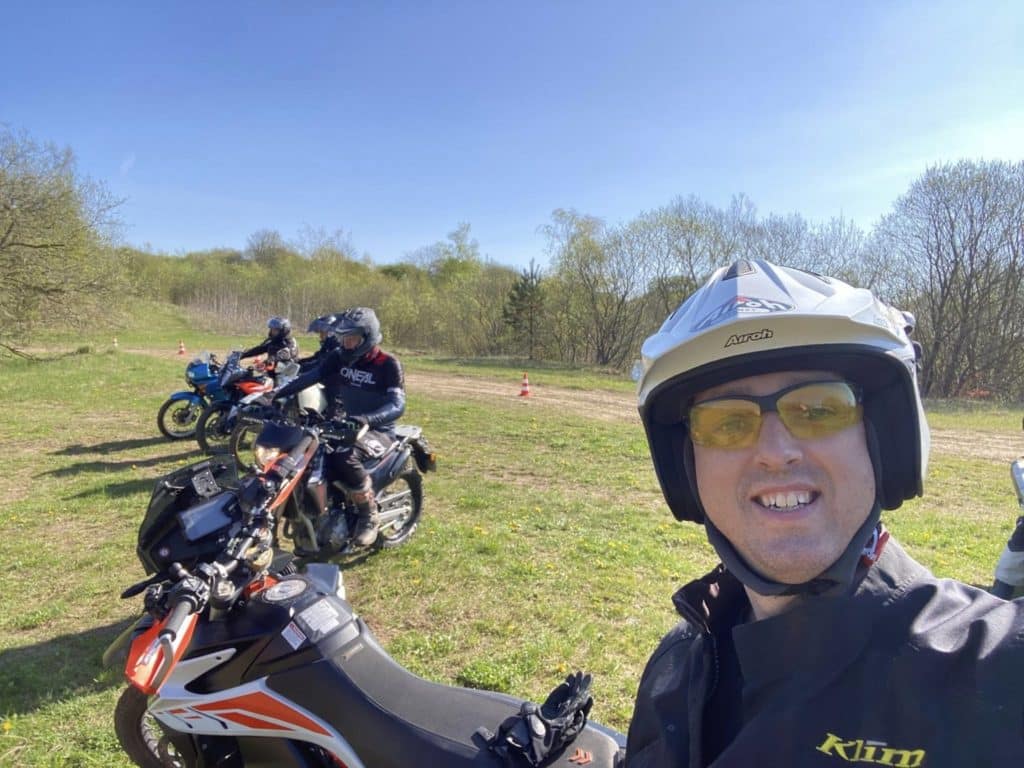 Ud over job og webshop, er Morten også manden bag Gruskursus.dk, hvor du kan lære at blive mere fortrolig med din motorcykel på løst underlag.
