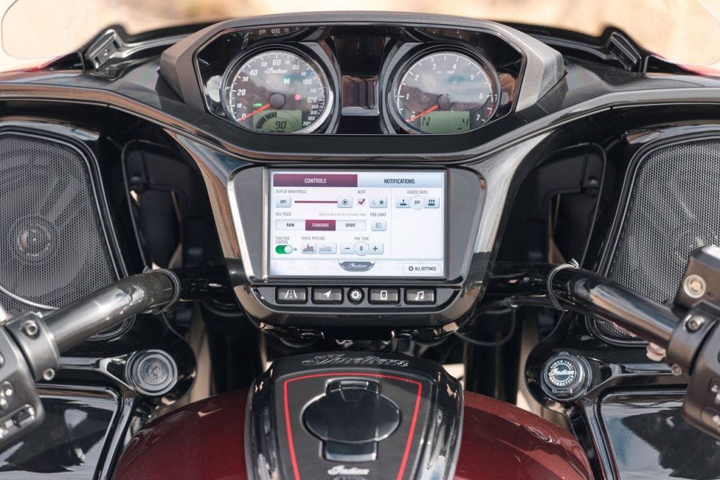 Fælles for alle tre modeller er Indians infotainmentsystem med RIDE COMMAND+, hvor betjeningen kan ske via kontakterne eller touchscreen; 101 mm på Scout og Chief, 178 mm på Challenger.