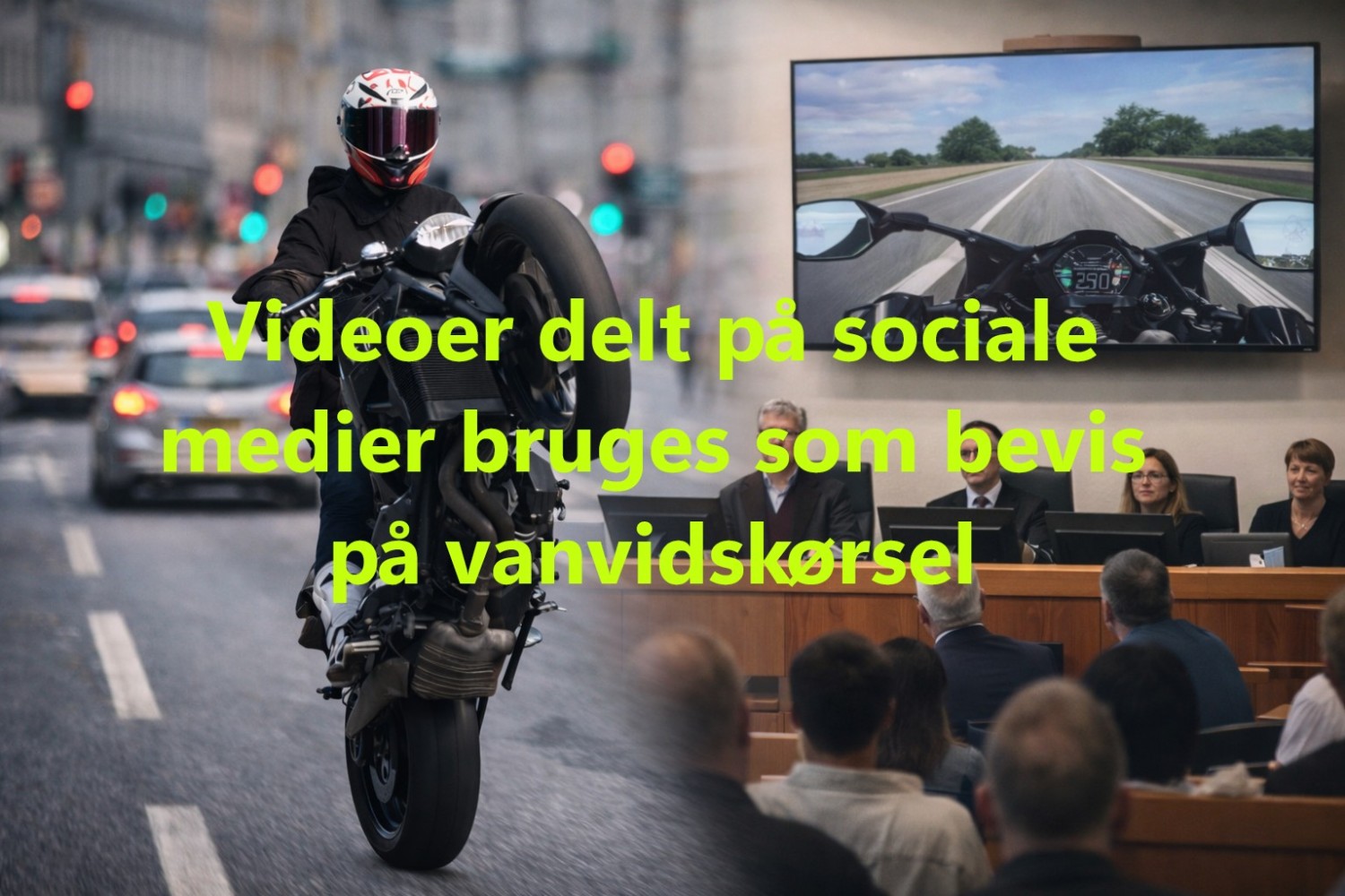 Sag om motorcyklists selviscenesatte vanvidskørsel ved Retten i Aarhus fulgt live - Egne videoer indgår som centrale beviser.