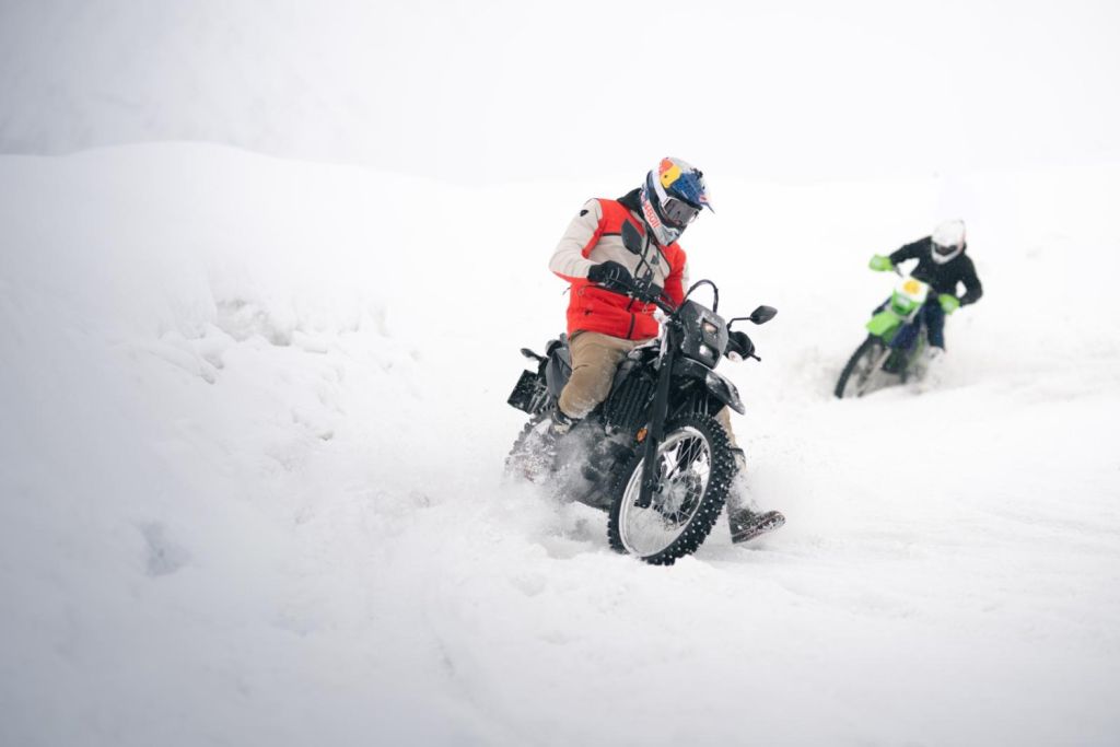 Midt i sneen og kulden blev et nyt kapitel i samarbejdet præsenteret. En specialbygget Yamaha XSR900, skabt af Deus, trak tråde tilbage til 90’ernes YZ125 og YZ250.